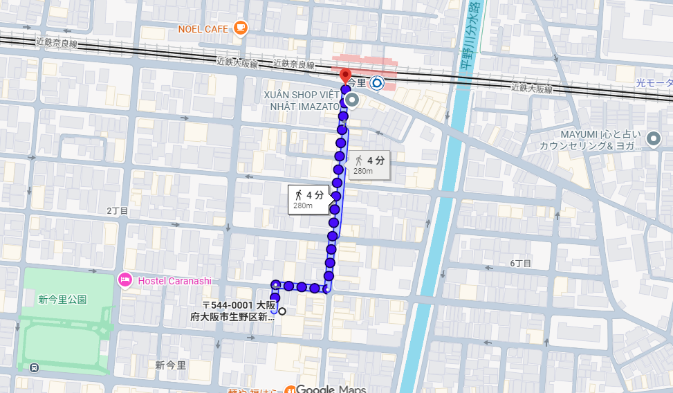 (約6分) - 鶴橋駅で近鉄奈良線に乗り換え、普通電車で近鉄今里駅までお越しください。